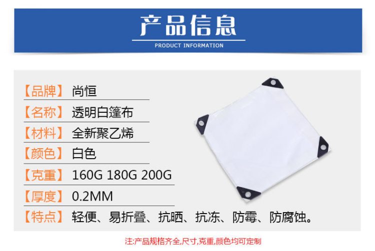 備注:克重70g-240gPE防水篷布都有加工定制,透明白色PE防水篷布